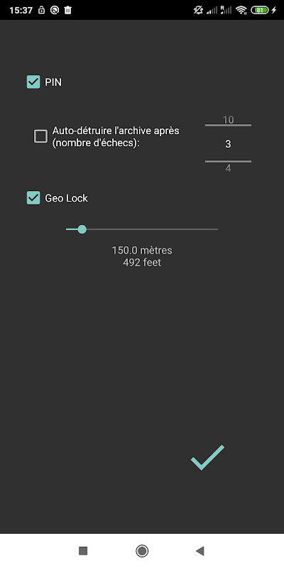 OPTION : It is possible to increase the security level by restricting the archive opening to the location where the option is enabled (in a range you can define)