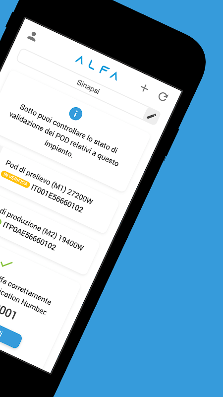 App ontwikkeld voor de inbedrijfstelling van sommige Sinapsi-gebruikersapparaten.
