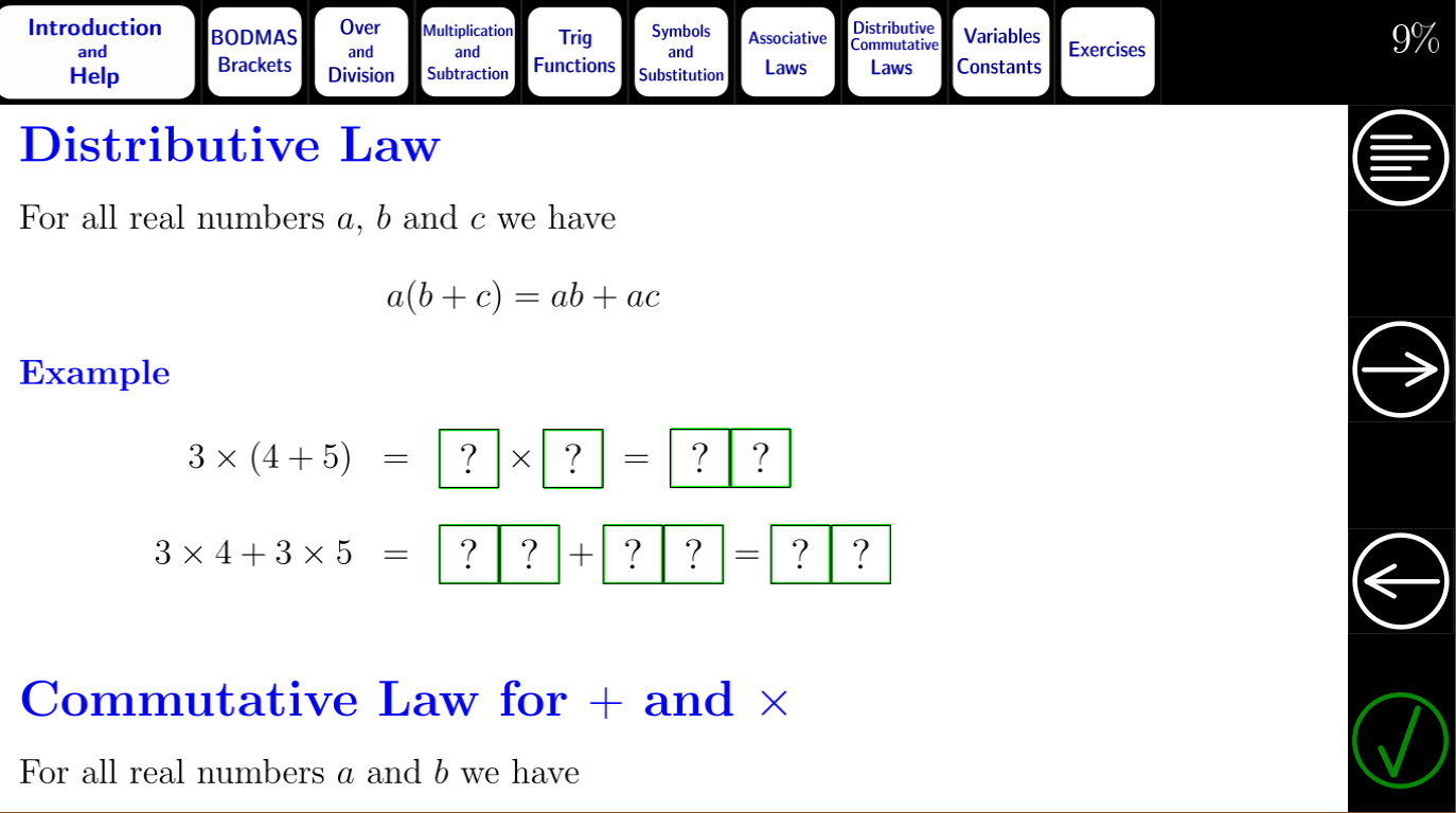 * Wiskunde studeren doe je het beste door middel van voorbeelden en oefeningen. Er zijn veel interactieve voorbeelden en oefeningen in deze tutorial die moeten worden voltooid om 100% vooruitgang te boeken.