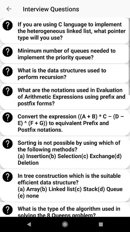 Deze app heeft een zeer eenvoudige gebruikersinterface en de inhoud is zeer eenvoudig te begrijpen door de gebruikers. Dit zal zeker helpen bij het voorbereiden van interviews, testen en op veel meer manieren!