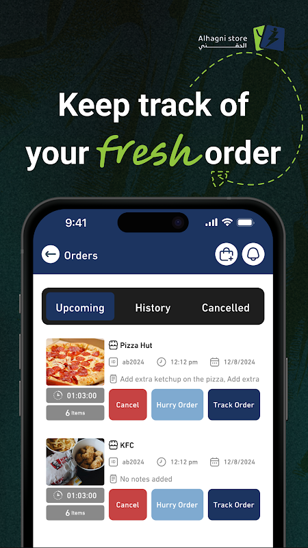 Beheer al uw etenbestellingen via één app.