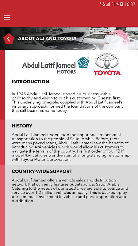 With the help of ALJ JOY, people can find out more about their favorite Toyota vehicles directly from the source, Abdul Latif Jameel, Toyota Saudi Arabia. Users can stay up to date on the latest news and events occurring in Saudi Arabia.