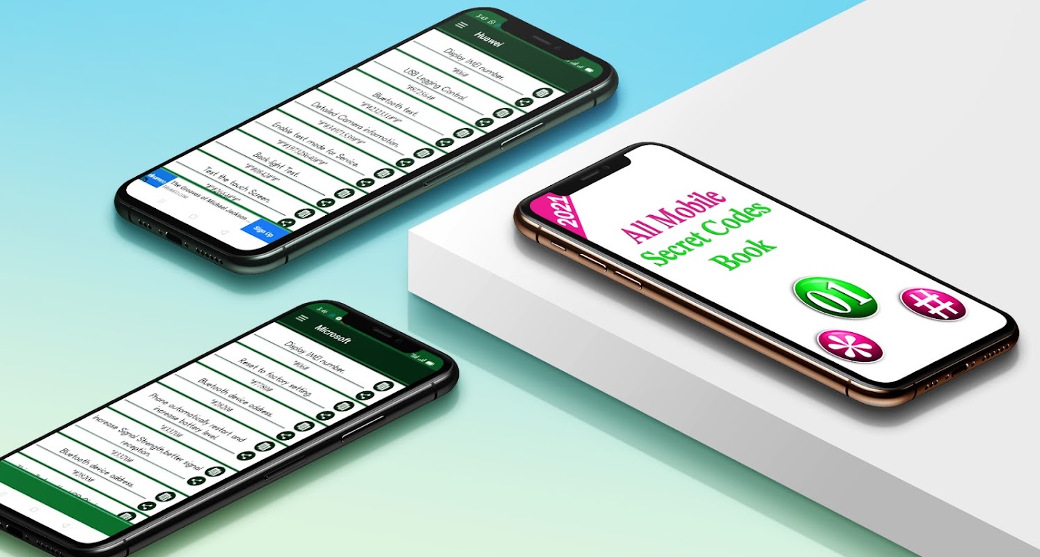 van alle mobiele apparaten zoals QMobile, Samsung, Sony, Lenovo, Motorola, BlackBerry, China, HTC, iPhone, LG, MicroSoft/Windows, OPPO en Huawei. In deze app worden verschillende verborgen codes gegeven die op de Android-apparaten kunnen worden gebruikt.