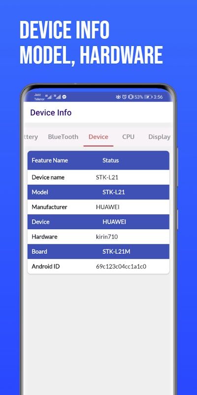 Systeeminformatie: Haal snel IMEI-nummers, firmwaregegevens, softwareversies en hardwarespecificaties op met slechts één tik.