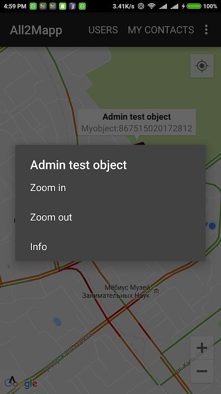 Universal mapping applicatie met stiften en communicatie van hun eigenaars