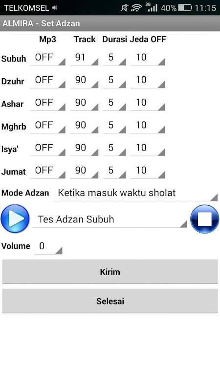 controller applicatie-instellingen voor ALMIRA elektronische gebedstijden