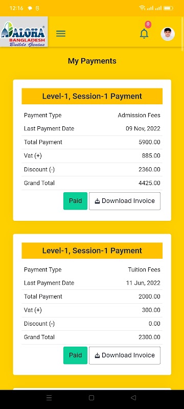 Een eenvoudige app om het studentenportaal van ALOHA BANGLADESH te beheren