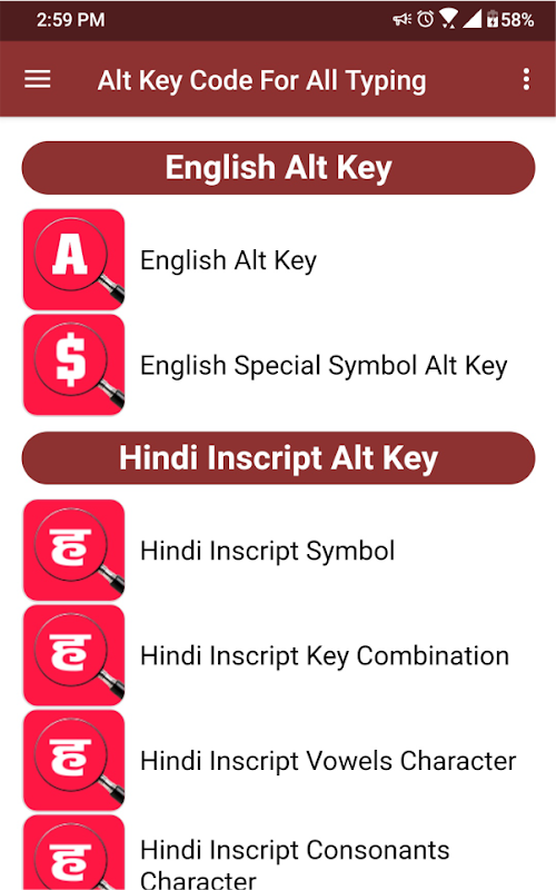 Deze app biedt u alle Hindi en Engels typen Alt Key Code, Special Character Code & Character combinatie Code. U kunt downloaden en profiteren van deze app en deze app delen met uw vrienden.