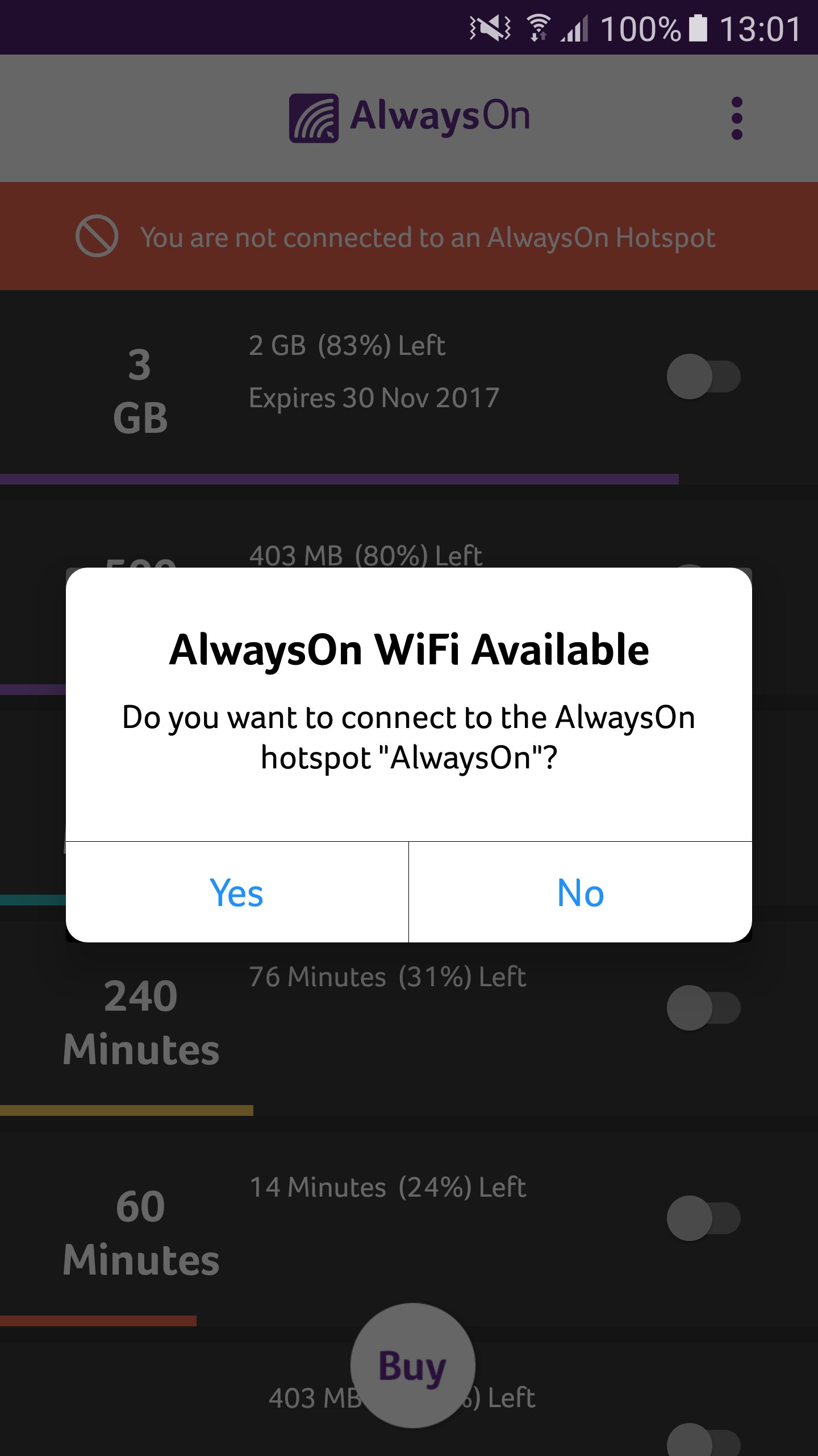 AlwaysOn App lets you connect seamlessly to the AlwaysOn WiFi network