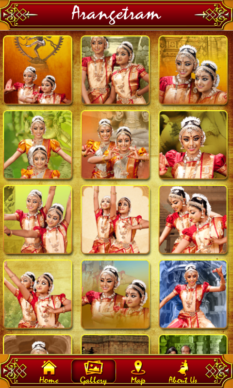 Deze applicatie richt zich vooral op de Zuid-Indiase klassieke dans voorstelling die zal worden uitgevoerd door Amara en Anika in hun Bharatanatyam Arangetram. Deze app vertoont niet alleen hun talent voor dit app bevat ook de locatie sensoren, zodat de gebruiker de richting van de gebeurtenis uit hun huidige kan volgen. Deze app geeft de gebruikers over de verschillende vormen van dans die zij verlenen, hun dans beelden en hun Guru's en muzikanten die ook gaan deelnemen aan het evenement. Bharata Natyam is een Indiase dansvorm vermaard uit Vedische leeftijden.