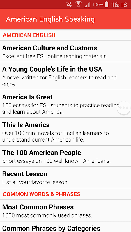 Met meer dan 400 lessen over het leven en de Amerikaanse cultuur. Je leert spreken als een Amerikaan. Door elke les leer je meer over het leven en de cultuur van het behagen van mensen. U kunt zelfs meer oefenen op luister- en spreekvaardigheid.