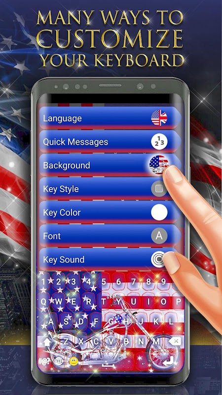 Het land van de vrijheid en het huis van de dappere! Als u van Amerikaanse houdt en u van “toetsenbord met emoji” wilt veranderen, gebruik deze toetsenbord met emoji die Amerikaanse vlagthema's heeft. God zegene de VS! Dit Amerikaanse toetsenbord is een van de best toetsenbord thema met een uniek toetsenbord ontwerp. Downloaden deze mooie Engelse VS toetsenbord thema en toetsenbord achtergrond en krijg een coole Amerikaanse vlagpapier. Het is een van de toetsenbord kleur met een Amerikaanse thema dat het verzenden sms berichten makkelijker maakt. Dit toetsenbord veranderen bevat ook motieven die verband houden met adelaar toetsenbord, New York toetsenbord en wallpapers zoals het beeld van het Vrijheidsbeeld. Dit is gewoon de best Amerikaanse toetsenbord met emoji voor mensen die een VS willen toetsenbord. Dit applicatie heet Amerikaanse Toetsenbord 🗽 Leuke Toetsenborden en het is volledig gratis voor downloaden. Deze “kleuren toetsenbord” bevat toetsenbord thema met emoji die zijn verbonden met “coole toetsenborden” toetsenbord thema. Het is een van de toetsenbord thema met verschillende stijlen die elke Amerikaanse fan zal houden van. Zodra u dit ziet Amerikaanse toetsenbord HD, begint u de Star Spangled Banner te zingen.