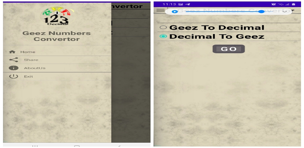 ይህ መተግበርያ የአማርኛ ቁጥሮችን ወደ INTRGER ለመቀየር ና ከ INTEGER ወደ አማርኛ ቁጥሮች ለመቀየር ይጠቅማል።