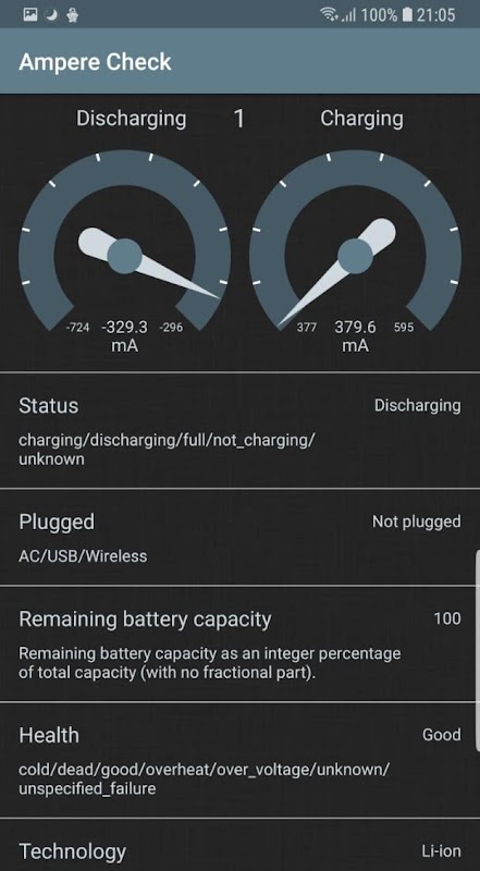 Ampere-controle geeft de gegevens van uw battary-status weer: