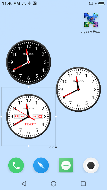 Gebruik de analoge klok als app-widget: pas de grootte aan op de standaardmanier.