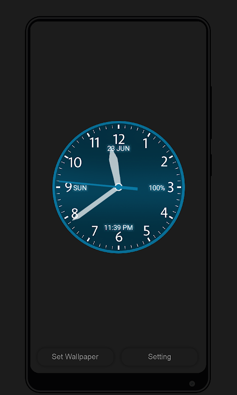 • Analoge klok toont uw huidige tijd met tweede of AM PM-formaat, huidige datum, dag van de week, batterijpercentage op uw display in digitale klokstijl.