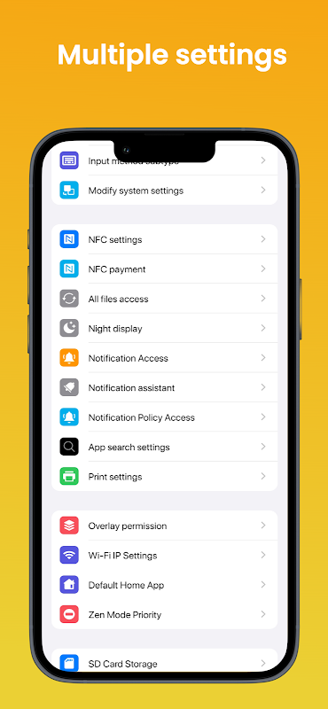 De Android Quick Setting Phone 16-applicatie heeft dezelfde interface als de instellingen op telefoon 16 en biedt alle instellingen die beschikbaar zijn op het Android-besturingssysteem.