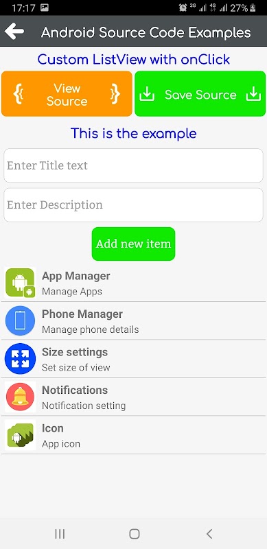 Deze app is gericht op voorbeeldcodes om Android-applicaties te ontwikkelen met Android Studio. Als je je Android-app in Android Studio wilt maken, is deze app iets voor jou. De voorbeelden hier kunnen worden geëxporteerd en rechtstreeks in Android Studio worden uitgevoerd. En u kunt de broncode bekijken zonder deze te exporteren. Ik heb geprobeerd voorbeelden te geven met basiscodevoorbeelden. U heeft geen internetverbinding nodig om de broncodes te bekijken of te exporteren.