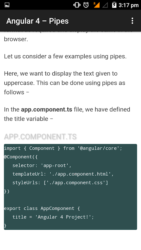 Angular 4 is a JavaScript framework for building web applications and apps in JavaScript, html, and TypeScript, which is a superset of JavaScript. Angular provides built-in features for animation, http service, and materials which in turn has features such as auto-complete, navigation, toolbar, menus, etc. The code is written in TypeScript, which compiles to JavaScript and displays the same in the browser.
