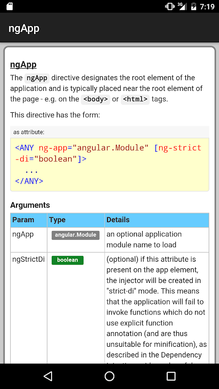 De angularjs secties worden gecategoriseerd en thema's zijn doorzoekbaar. Enkele secties omvatten: