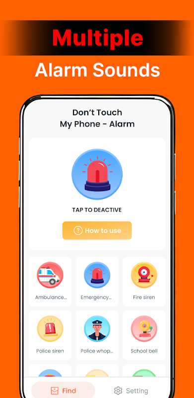 If someone tries to touch or move your phone, the alarm will trigger and sound a loud siren.