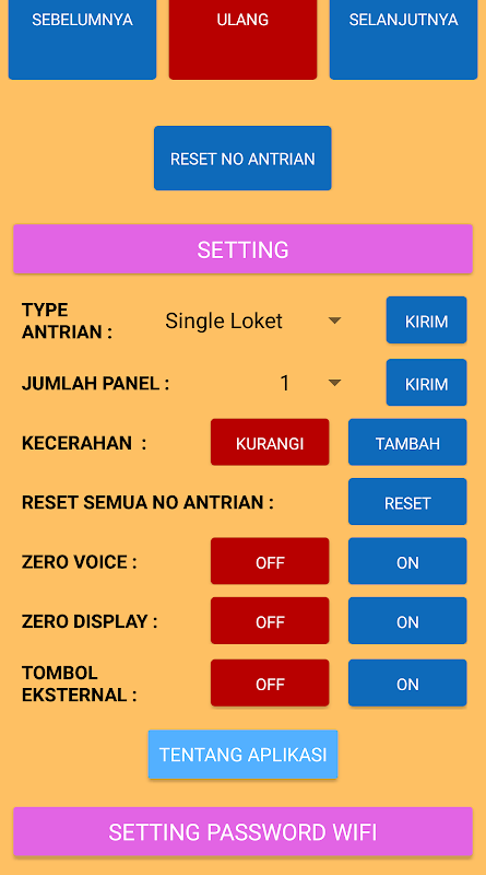 De QUEUE SYSTEM Setting Controller-applicatie met WIFI-verbinding