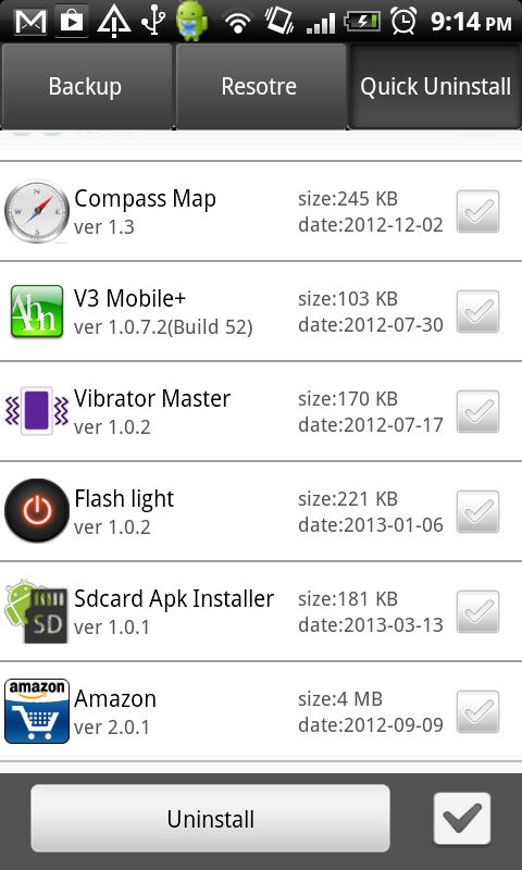 Steun aan eenvoudige back-up apk, restore apk, app snel verwijderen.