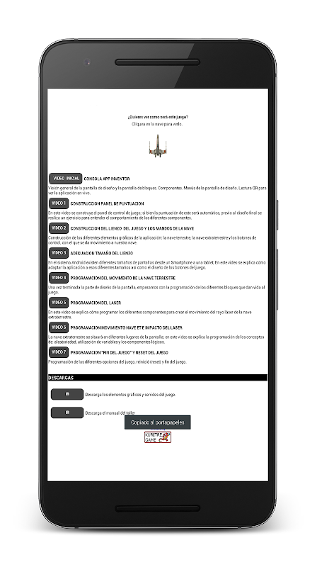 Met deze applicatie kun je toegang tot video's van de workshop op Youtube dat bestaat uit acht video's van een gemiddelde duur van drie minuten, kan het ook worden benaderd om Google Dirve graphics downloaden en geluiden die de workshop ook zal gebruikt worden als een complete 165 pagina's handleiding in PDF-formaat die zich ontwikkelt en verklaart elke stap video.