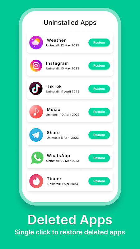 Zeg vaarwel tegen de angst om uw favoriete applicaties te verliezen. Met APK Backup kunt u snel verwijderde apps herstellen en herstellen, zodat u er zeker van bent dat ze snel weer op uw apparaat staan. U kunt direct naar de verwijderde apps en games zoeken in de app App Recovery: Apps Backup & Restore. Belactiviteit: De verwijderde apps herstellen heeft een extra functie, nummerherkenning. Met deze functie in de app-herstelapp kunt u alle oproepinformatie bekijken, zoals gemiste oproep, voltooide oproep, geen antwoord, onbekende beller na de oproepen.