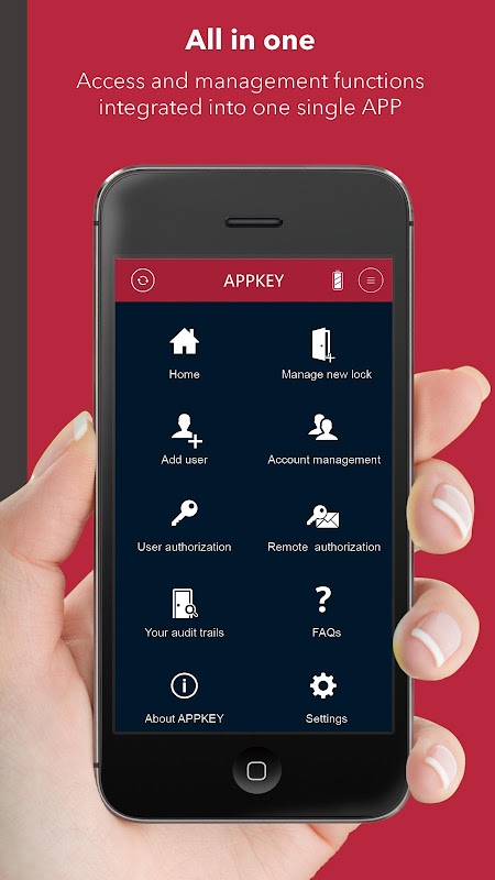 - De APPKEY® mobiele app biedt een toegangscontrole platform waar je toevoegen, verwijderen en beheren van autorisatie van gebruikers, naast het bewerken van persoonlijke informatie van gebruikers.