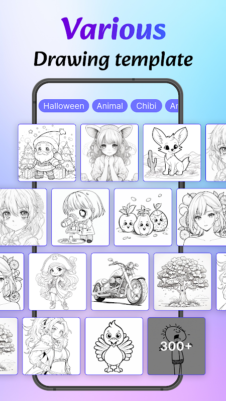 3. Verschillende tekensjablonen: veel traceersjablonen: dieren, voertuigen, natuur, eten, anime enz.