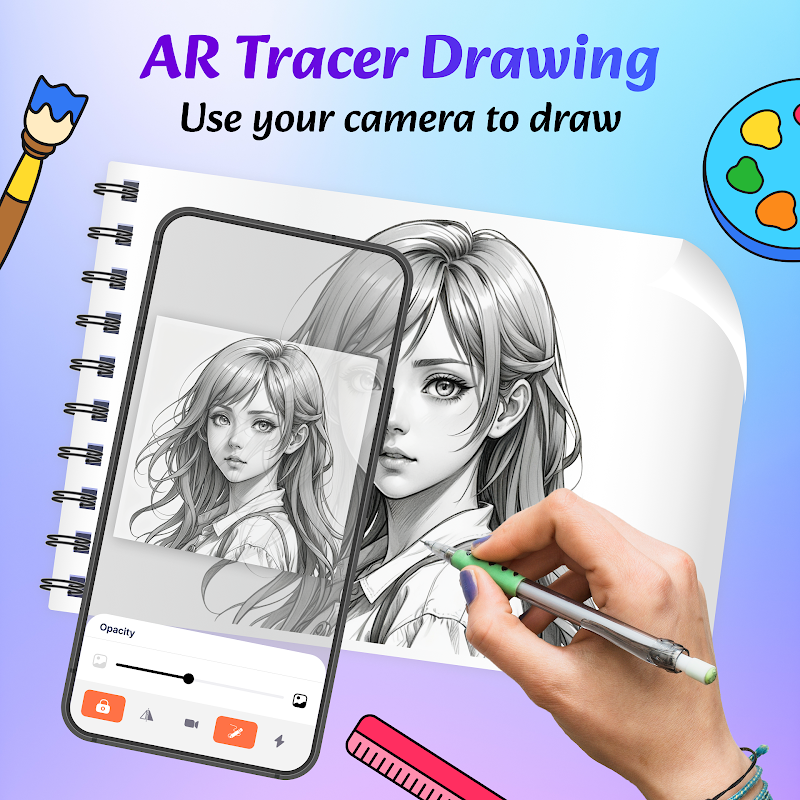 AR Tracer: Trace Drawing is de ultieme app voor al uw traceerbehoeften. Met deze app kun je van elke foto of voorbeeld een schets maken die je kunt overtrekken, zodat je je vaardigheden kunt perfectioneren en verbluffende kunstwerken kunt maken.