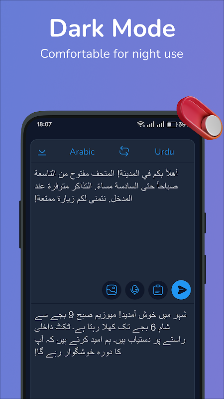 - Tweerichtingsvertaling: vertaal eenvoudig Arabisch naar Urdu en Urdu naar Arabisch