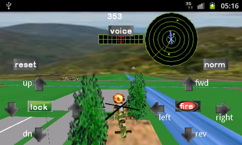 Use your Armoured Helicopter in Battle against increasing numbers of enemy armoured tanks,helicopters,jets, missiles and anti-tank guns. With your Radar Scanners, Infra-Red Night Vision and Missile Targeting System lock onto them and run up the points to move on to new levels.