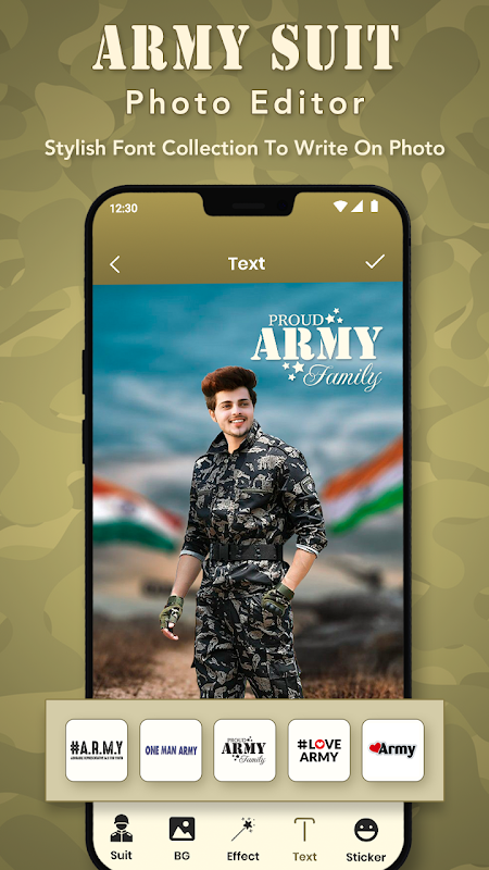 Photo Editing Army Uniform heeft een verbazingwekkende verzameling nieuwe Photo Suite-frames, de nieuwste Suite-fotoachtergronden en stickers voor de live-foto van de commandant. De uniforme foto-editor van het Indiase leger heeft 's werelds beste nieuwe Army Suite-fotoachtergronden, fotolijsten en stickers.