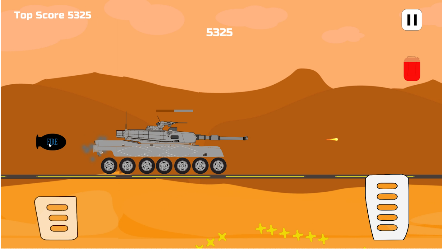 De game heeft een leuke uitdagingsmodus, waarin je probeert te winnen, punten te krijgen en vijandige legertanks neer te schieten. Eenvoudig gezegd noemen we dit spel een racespel. In tegenstelling tot autoracespellen in dit spel heeft het voertuig een kogelsysteem, zodat je kunt schieten tijdens het rijden. Deze game heeft een rijke gameplay. In dit spel ben je verantwoordelijk voor het besturen van een FIGHTER ARMY TANK op een woestijnbaan met veel sprongen en aanvallen van vijanden.
