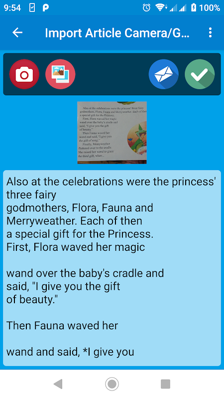 Om deze functie te gebruiken, tikt u op de knop Importeren en tikt u op het camerapictogram om afbeelding van camera op te halen of tikt u op Galerij om een afbeelding van uw apparaatopslag te krijgen. Het zal je laten zien om afbeelding bij te snijden / roteren, tik dan op Ja Vink het onderste afbeeldingspictogram aan, daarna zie je de afbeelding naar tekst en tik vervolgens op de bovenste groene Ja vink aan om tekst naar je artikelvenster te importeren. Draai uw artikel en u gaat naar het tabblad Spin voor een nieuw artikel. Gebruik het e-mailpictogram voor feedback.