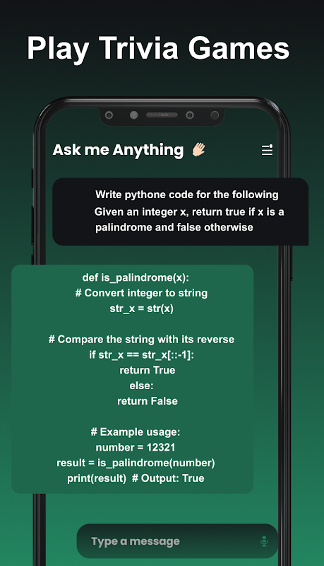 Ai chat bot" is een conversatievrije AI-chat-app die wordt aangedreven door kunstmatige intelligentie die een breed scala aan vragen snel en nauwkeurig beantwoordt. Uw eerdere chats worden ook opgeslagen door de chat ai-app, zodat u ze kunt raadplegen wanneer u maar wilt. AI Chat bot is een gratis AI-chatbotprogramma dat productinformatie verstrekt en klachten van klanten oplost. Het is bedoeld om uw leven gemakkelijker te maken.
