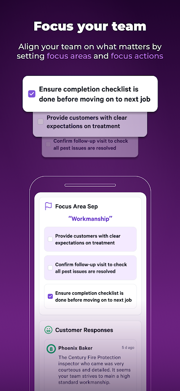 - Stel focusgebieden in voor je team om ze te helpen bepalen waar ze als eerste aan moeten werken, markeer verbeterpunten en geef coachingtips op basis van feedback van klanten.