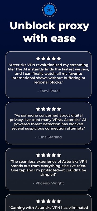 Sluit je aan bij miljoenen gebruikers wereldwijd die Asterisks VPN vertrouwen vanwege de snelle, veilige en betrouwbare VPN-services. Of je nu je privacy wilt verbeteren, je gegevens wilt beschermen of beperkingen wilt omzeilen, Asterisks VPN is de app voor jou.