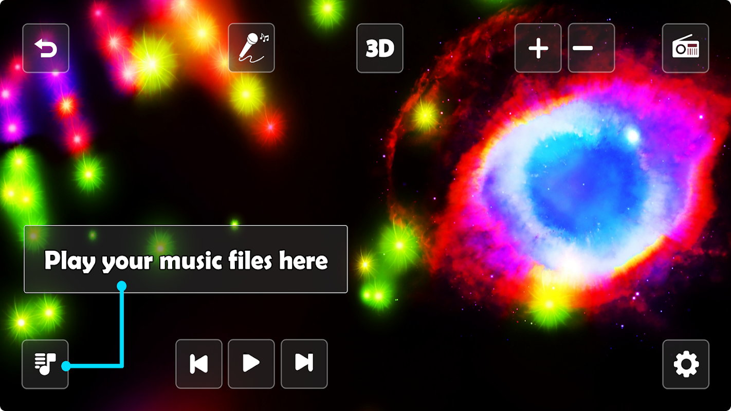 Speel je muziek af met elke muziekspeler-app. Schakel dan over naar deze app. Vervolgens wordt de muziek gevisualiseerd. De app biedt toegang tot een verscheidenheid aan online radiostations in verschillende muziekgenres. Ook wordt er een speler voor je muziekbestanden meegeleverd.