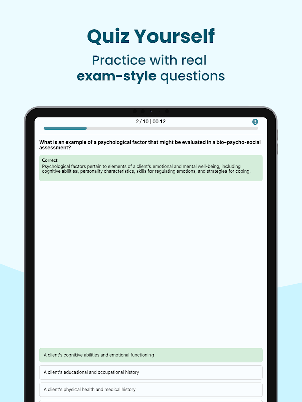 Studeer sneller en gemakkelijker met alle tools die je nodig hebt om te slagen! Of je nu op je werk bent of thuis ontspant, neem onze studie-app mee en haal met vertrouwen je ASWB-examens.