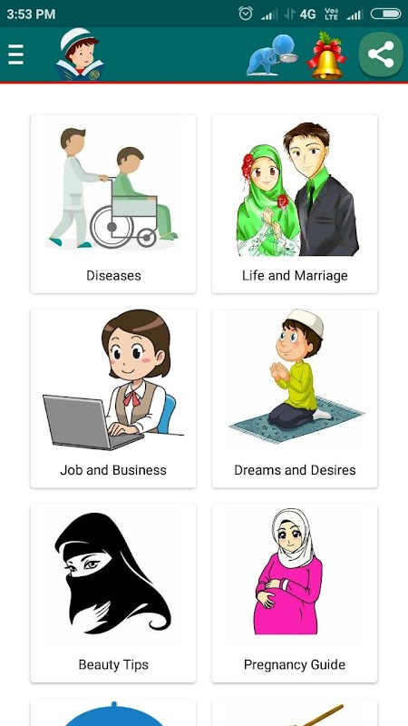 എന്ന ഇസ്ലാമിക App ഇൽ അടങ്ങിയ ചില വിഷയങ്ങൾ: