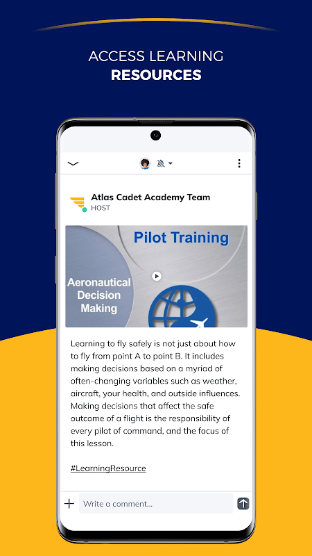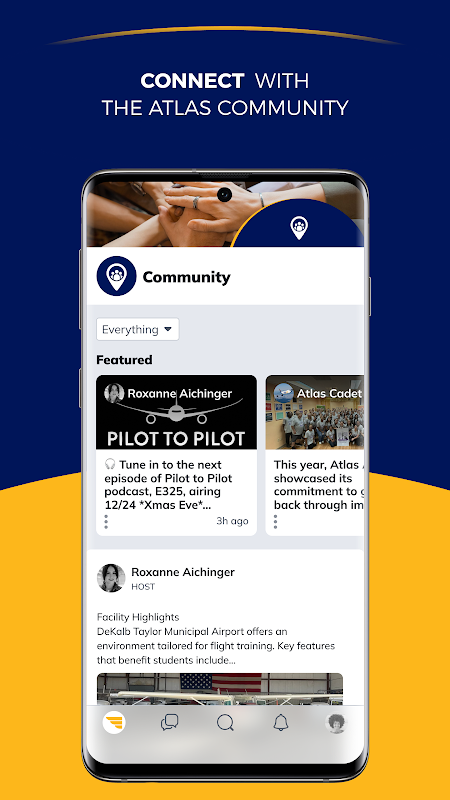 De Atlas Cadet Academy-app is een privécommunity die is ontworpen voor pilootcadetten die zijn ingeschreven aan de Atlas Cadet Academy van de Illinois Aviation Academy. Illinois Aviation Academy is gevestigd op de luchthaven DuPage County in West Chicago, Illinois. In de app zijn hulpmiddelen opgenomen waarmee studenten hun pilot-opleidingstraject kunnen ondersteunen. Van educatieve bronnen tot een sociale netwerkgemeenschap waar studenten ideeën en ervaringen kunnen delen: de Atlas Cadet Academy-app voegt aanvullende training en ondersteuning rechtstreeks toe aan het pilottraject.