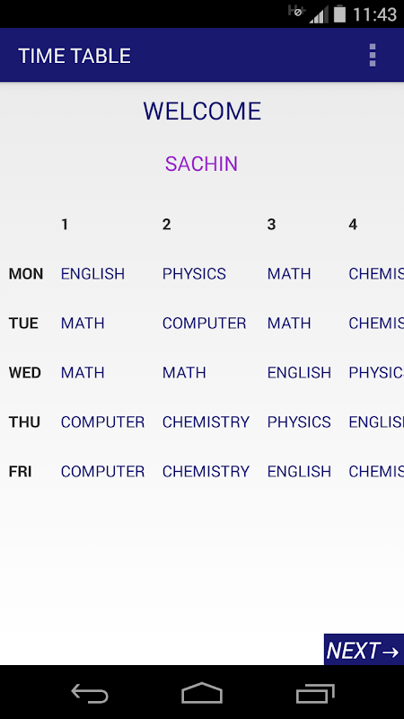 An application to take care of your attendance. All it requires is one click and your attendance percentage in each subject will be calculated. Also a total percentage will be displayed. If you miss marking attendance, No Problem. You can edit the attendance record at any time. The interface has been designed keeping in mind the simplicity of the task. Open the app and your periods for the day will be displayed, mark them and all is done. You can also edit your time table at any time.