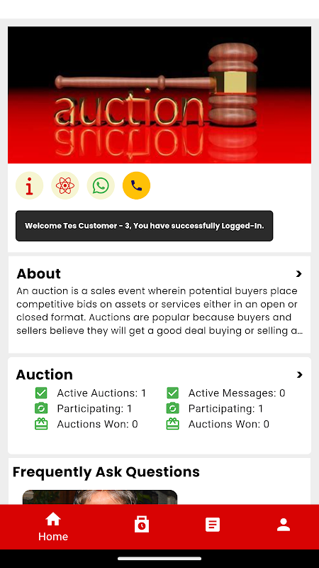 Met deze app kan de klant deelnemen aan een voorwaartse of omgekeerde veiling