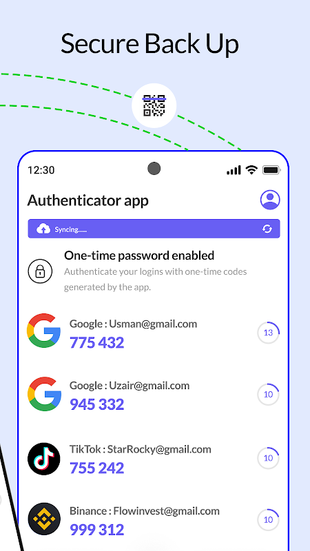 ✔ SecureAuth maakt eenvoudige accountconfiguratie mogelijk door het scannen van QR-codes of het handmatig invoeren van een beveiligingssleutel en werkt offline voor snelle verificatie of authenticatie.