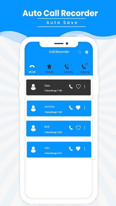 Call Recorder is een gratis en eenvoudig te gebruiken app voor automatische telefoonoproeprecorder die op elk moment telefoongesprekken van beide kanten met hoge kwaliteit opneemt. Het is de beste recorder voor geluidsopname met hoge kwaliteit. Het is eenvoudig en gemakkelijk te gebruiken.