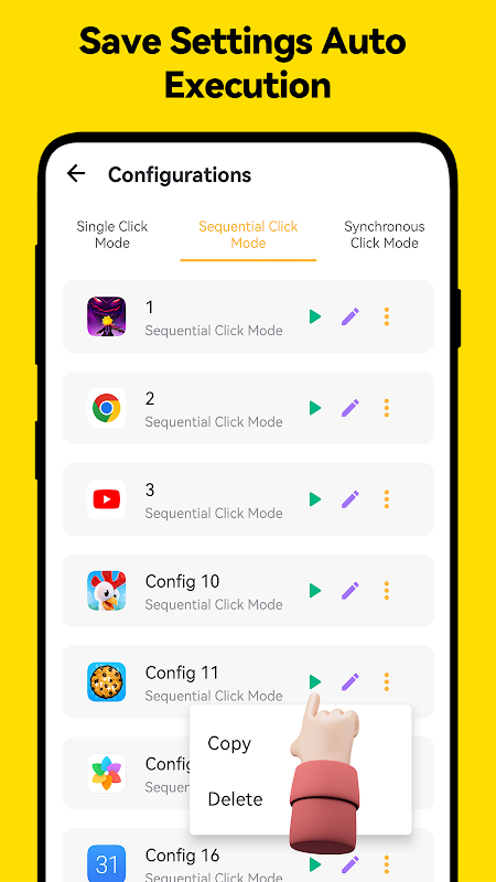 · Sequentiële klik en gesynchroniseerde klikfunctionaliteit: Onze automatische clicker biedt twee klikmodi: sequentiële klik en gesynchroniseerde klik. De sequentiële klikmodus voert klikbewerkingen uit in een vooraf ingestelde volgorde, terwijl de gesynchroniseerde klikmodus gelijktijdig klikken op meerdere posities mogelijk maakt, waardoor de efficiëntie wordt verbeterd.