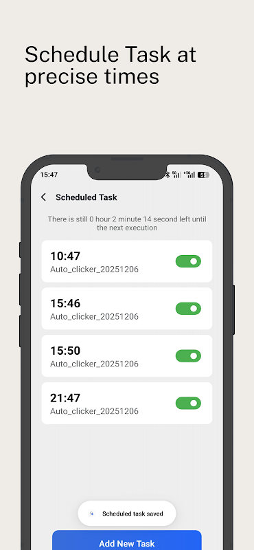 Wat als u uw telefoon niet gebruikt, maar snel moet klikken? Of het nu gaat om een opgeslagen configuratie of een nieuwe configuratie, u kunt het tijdstip kiezen waarop u snel wilt beginnen met klikken.